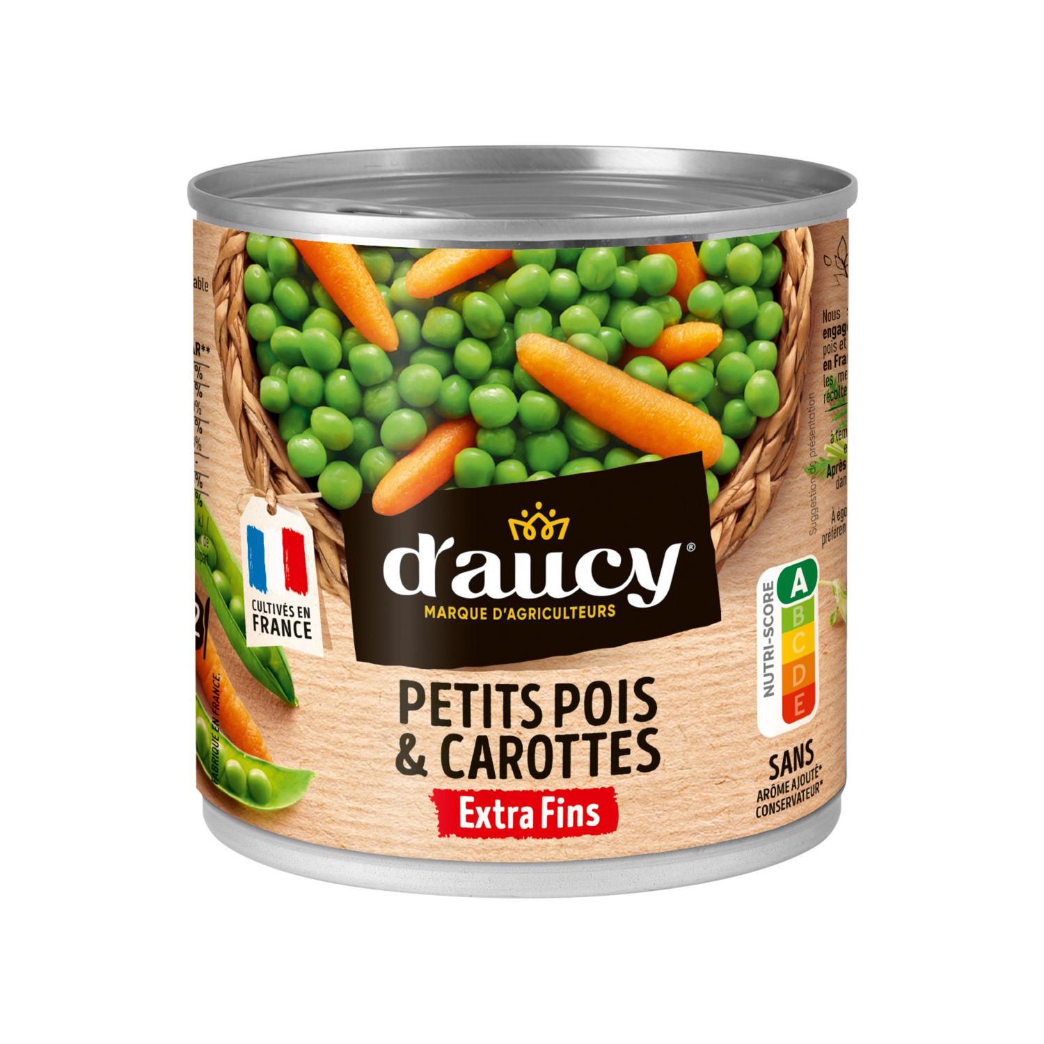 Ces petits pois et carottes sont cultivés en plein champ en France, récoltés en saison et à bonne maturité. Ces petits pois et carottes sont cultivés en France.