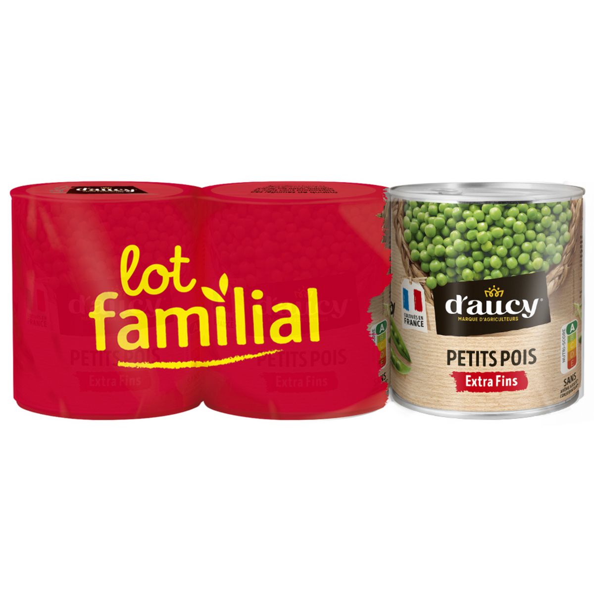 Petits pois, eau, sucre, sel. Ces petits pois sont cultivés en France.