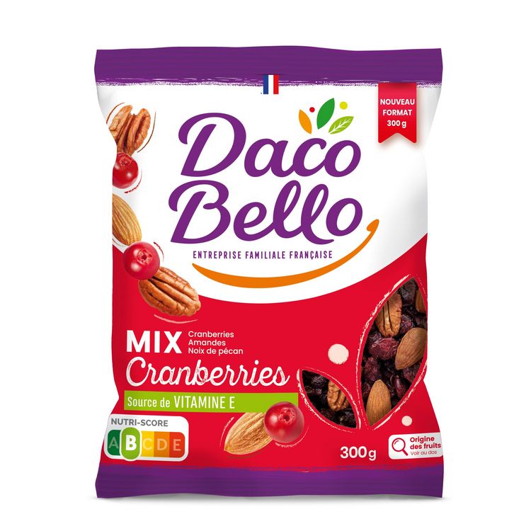 Laissez-vous tenter par le mélange Cranberries Mix, un mélange de fruits secs à l'esprit américain à base de cranberries, d'amandes et de noix de pécan.