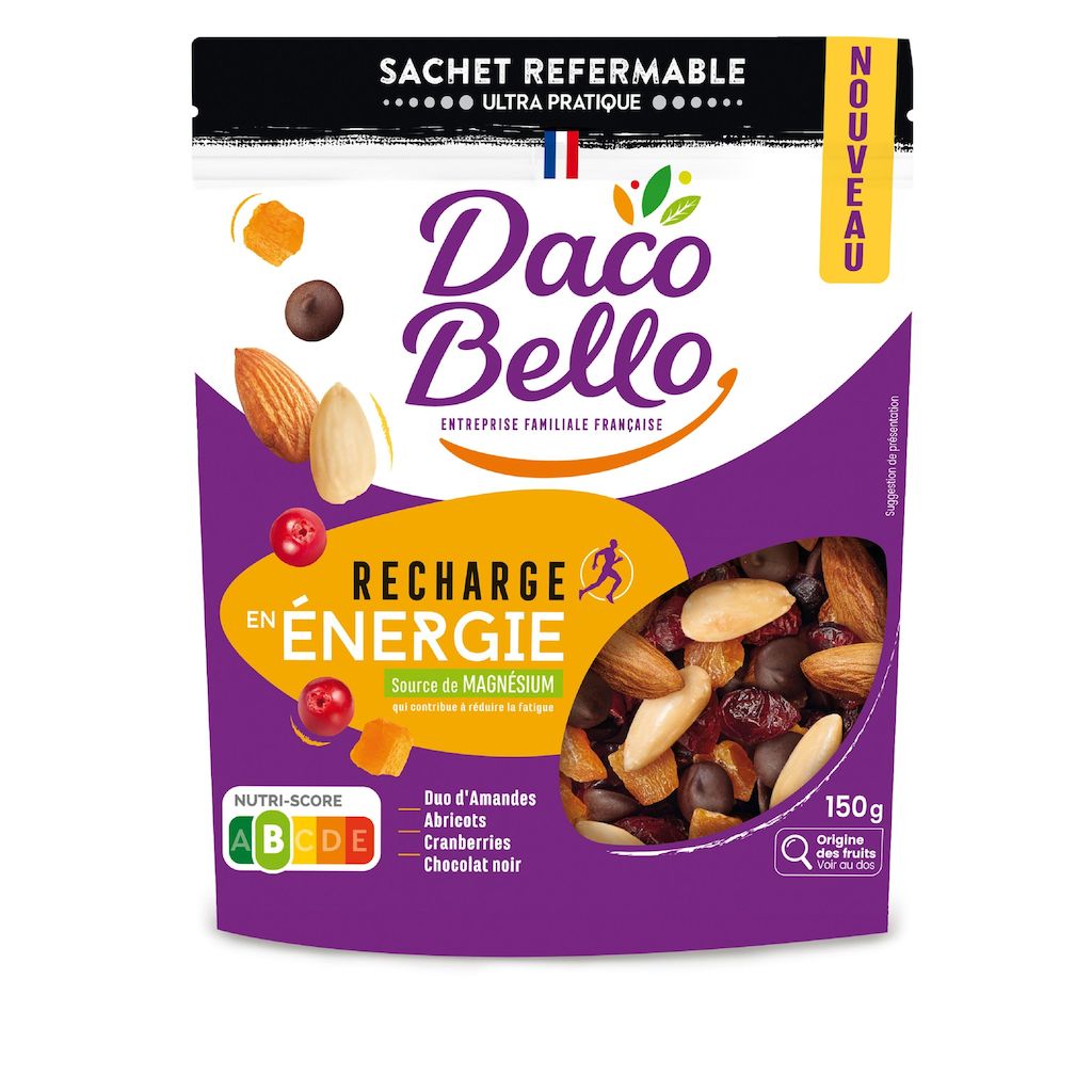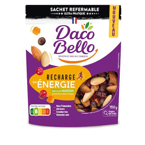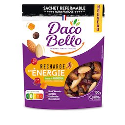 Notre mélange Recharge en Énergie sera idéal pour vous rebooster. Un mélange de choc composé d'un duo d'amandes, de cubes d'abricots, de cranberries et de chocolat noir à 70% de cacao pour ce petit boost d'énergie. C'est un mélange source de magnésium qui contribue à réduire la fatigue et il est également source de vitamine E, qui contribue à protéger les cellules contre le stress oxydatif.