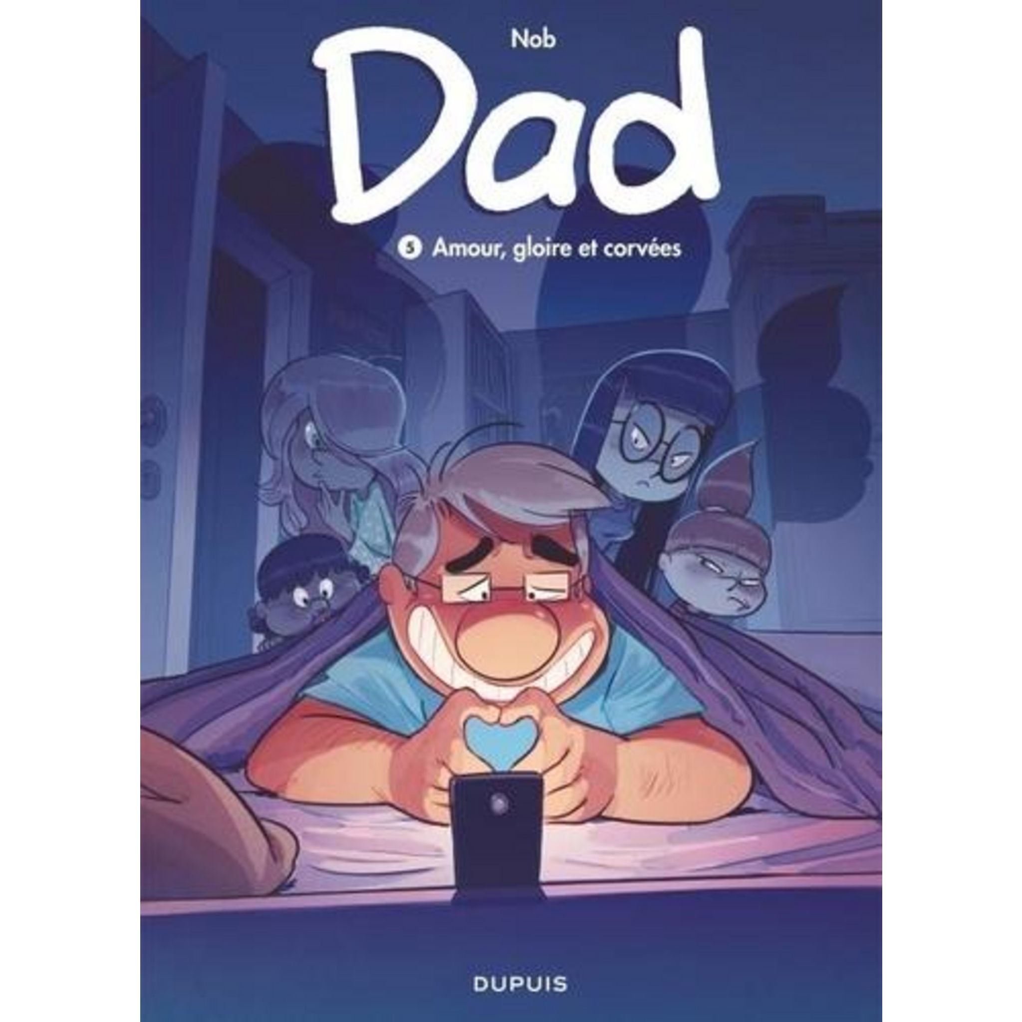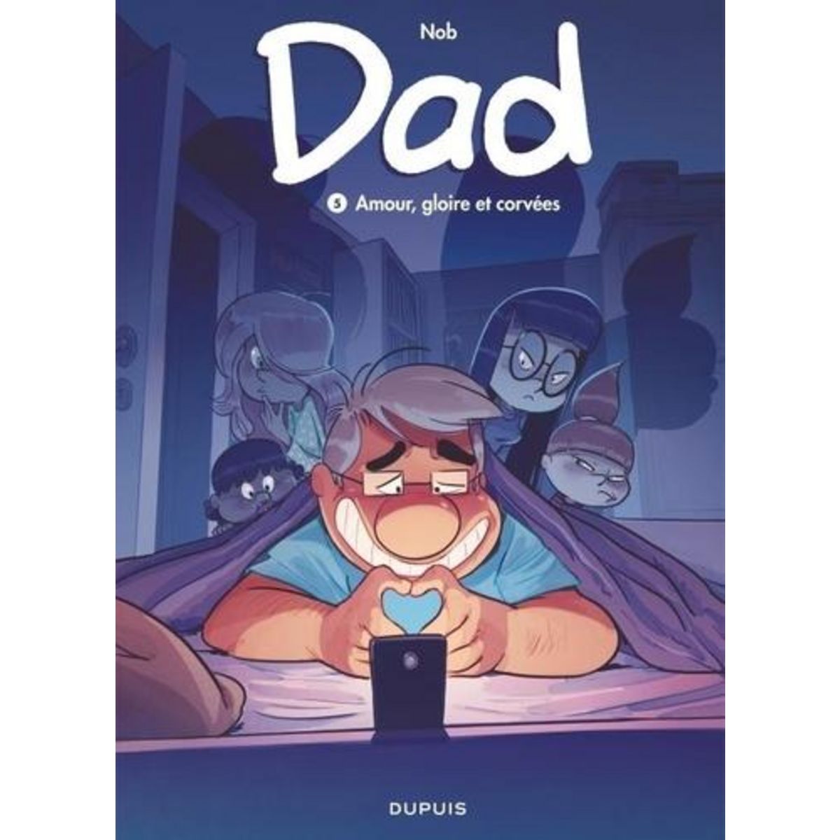 Dad ne sait plus où donner de la tête ! S'occuper de ses quatre filles aux caractères aussi forts que disparates, c'est un travail à plein temps : entre le désir d'indépendance de Pandora, les aventures amoureuses d'Ondine, les revendications militantes de Roxane et l'affection débordante de Bébérenice, les journées sont bien remplies. Pourtant, Dad n'en reste pas moins un homme et, en tant que père célibataire, la solitude lui pèse aussi parfois. Maintenant que ses enfants grandissent, sentirait-il de nouveau son coeur battre pour quelqu'un, quelque part entre les sacs de courses, les panières de linge sale et les casseroles ? L'amour fait tourner plus d'une tête dans ce cinquième tome des aventures de Dad et de sa petite famille !