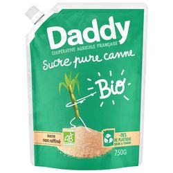 La cassonade 100% pure canne Bio Daddy non raffinée, est issue de l'agriculture biologique. Elle est restée naturellement brute pour préserver toute la richesse de ses saveurs. La culture de la canne Bio intègre des pratiques respectueuses de l'environnement, en réutilisant des nutriments issus de la canne pour préserver la fertilité des sols. Notre sucre est l'ingrédient incontournable pour toutes vos envies sucrées. Un sachet pratique, pensé pour les petits comme les grands chefs : robuste, simple à utiliser, et toujours hermétique. Cet emballage sera peut-être un peu froissé, un peu marqué mais toujours aussi pratique et hermétique. Un sachet costaud pour zéro fiasco ! On a sucré -78% de plastique dans cet emballage.