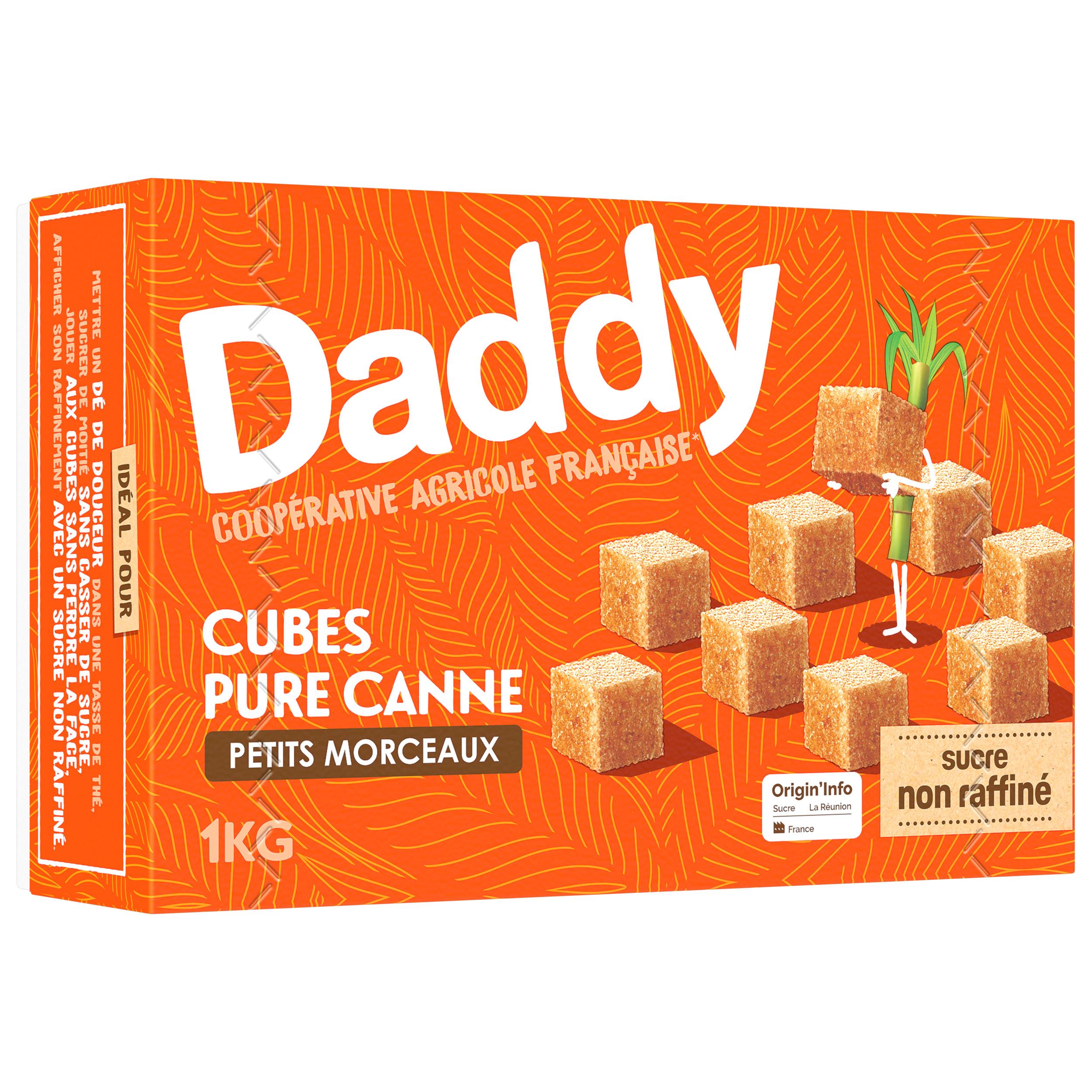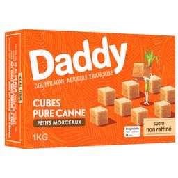 Le cube Daddy 100% pure canne, non raffiné, est élaboré à partir de cannes à sucre soigneusement sélectionnées, pour un goût brut et authentique. Boite de 252 morceaux de 4g. Idéal pour mettre un dé de douceur dans une tasse de thé, sucrer de moitié sans casser de sucre, jouer aux cubes sans perdre la face, afficher son raffinement avec un sucre non raffiné.