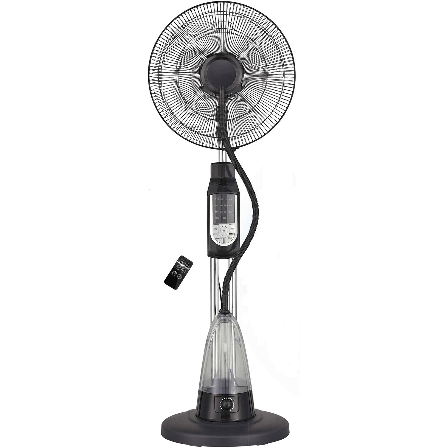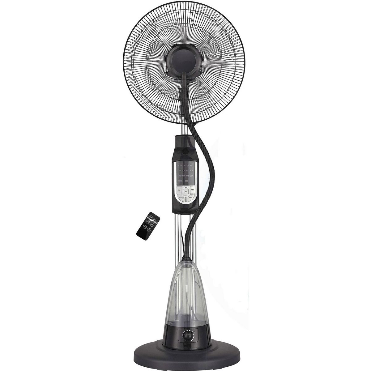Grâce à ses 3 vitesses vous pourrez régler la puissance du souffle, de plus il est est équipé d'une fonction brumisateur et d’une télécommande pour que tout le monde puisse profiter de la fraîcheur procurée par ce ventilateur.
