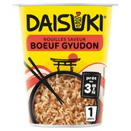 Découvrez DAISUKI, de délicieuses nouilles instantanées inspirées de la street-food japonaise. Des nouilles instantanées aux recettes authentiques : Poulet Teriyaki, Bœuf Gyudon, Curry Piri Kara, Légumes Wafuu, faciles à préparer et prêtes en 3minutes ! Existent en sachet ou en cup d'une portion. DAISUKI signifie j'adore en Japonais.