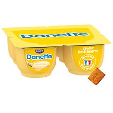 Danette crème dessert saveur petit beurre c'est de la crème et du lait français avec un bon goût petit beurre et toujours la petite touche de bonne humeur qui va avec. Fabriquée dans notre laiterie de Saint-Just-Chaleyssin (38), cette crème dessert saveur petit beurre à la texture onctueuse est idéale pour un dessert gourmand en fin de repas. Danette, c'est la crème dessert pour laquelle tout le monde est toujours debout ! *Ajout de lait écrémé concentré ou en poudre (Origine: UE)