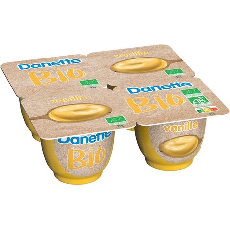 Crème dessert bio à la vanille Danette Bio c'est une créme dessert bio et 100% gourmande ! Retrouvez la star de vos desserts avec la crème dessert vanille en version bio. Fabriquée en Hauts de France avec du lait français (Baileul,59270) cette crème à la vanille gourmande est à base de produits bio et sans colorants.* *la couleur est apportée par un concentrée de pommes et carottes