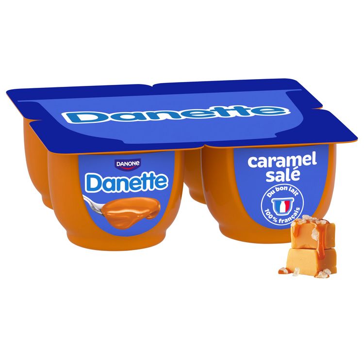 Danette crème dessert caramel c'est de la crème et du bon lait français* avec un delicieuse saveur de caramel et toujours la petite touche de bonne humeur qui va avec. Fabriquée dans notre laiterie de Saint-Just-Chaleyssin (38), cette crème caramel à la texture onctueuse est Idéale pour un dessert gourmand en fin de repas. Danette, c'est la crème dessert pour laquelle tout le monde est toujours debout! *Ajout de lait écrémé concentré ou en poudre (Origine: UE)
