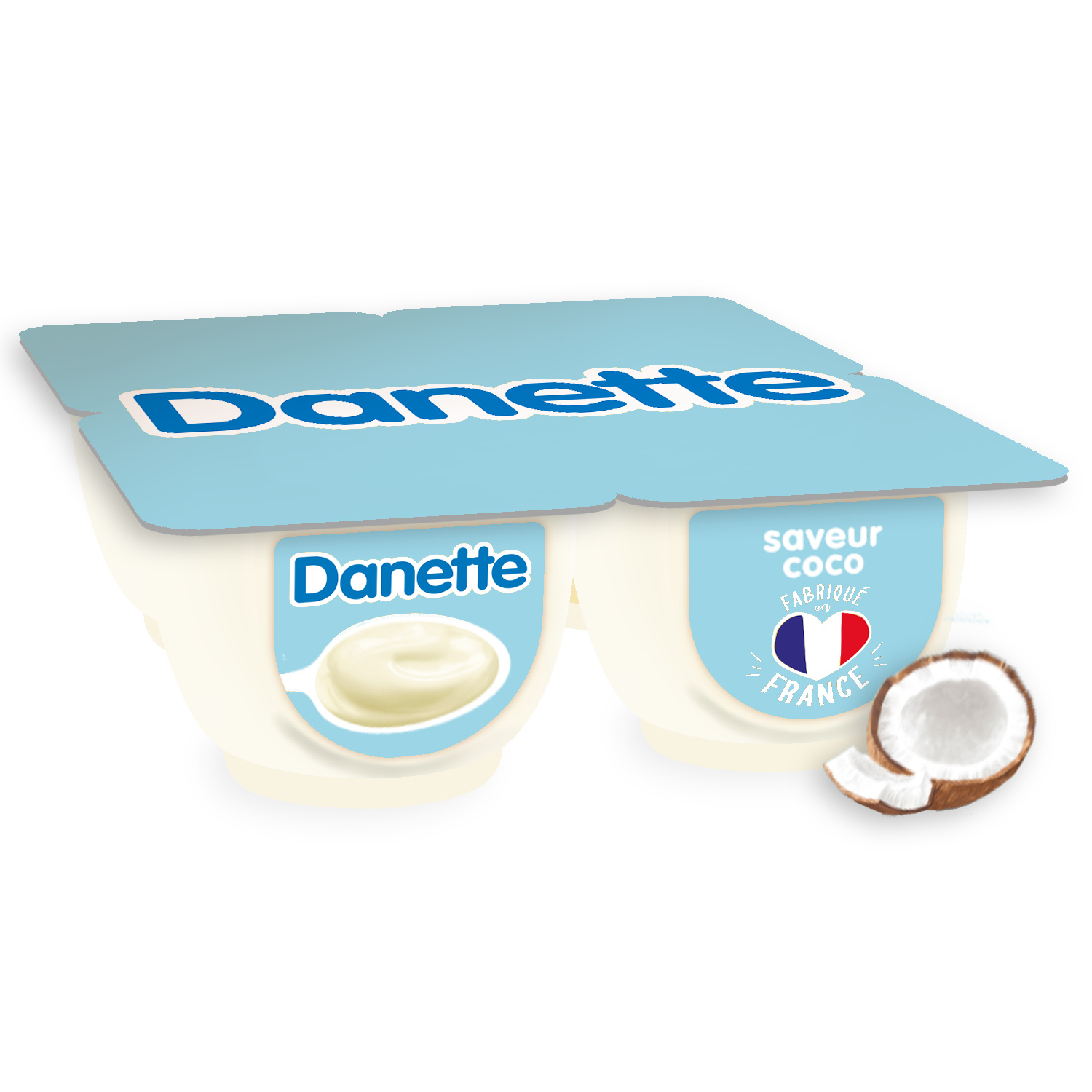 Danette crème dessert saveur coco c'est de la crème et du bon lait français* avec une délicieuse saveur de coco et toujours la petite touche de bonne humeur qui va avec. Fabriquée dans notre laiterie de Saint-Just-Chaleyssin (38), cette crème saveur coco à la texture onctueuse est Idéale pour un dessert gourmand en fin de repas. Danette, c'est la crème dessert pour laquelle tout le monde est toujours debout! *Ajout de lait écrémé concentré ou en poudre (Origine: UE)