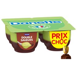 Dessert lacté aromatisé pistache et chocolat.