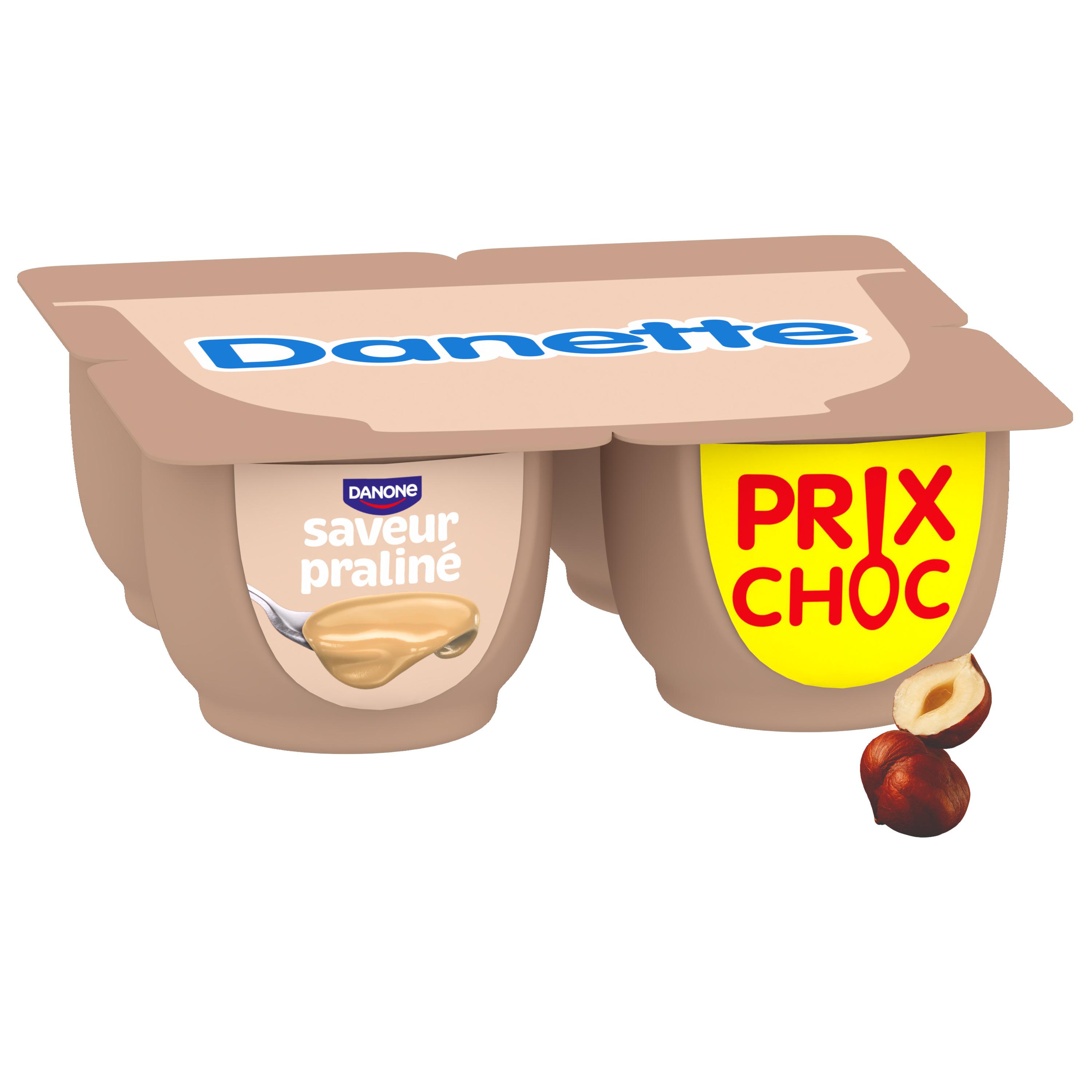 Danette crème dessert saveur praliné c'est de la crème et du bon lait français* et toujours la petite touche de bonne humeur qui va avec. Fabriquée dans nos laiteries de Saint-Just-Chaleyssin (38) et de Bailleul (59), cette crème saveur praliné à la texture onctueuse est idéale pour un dessert gourmand en fin de repas. Danette, c'est la crème dessert pour laquelle tout le monde est toujours debout!