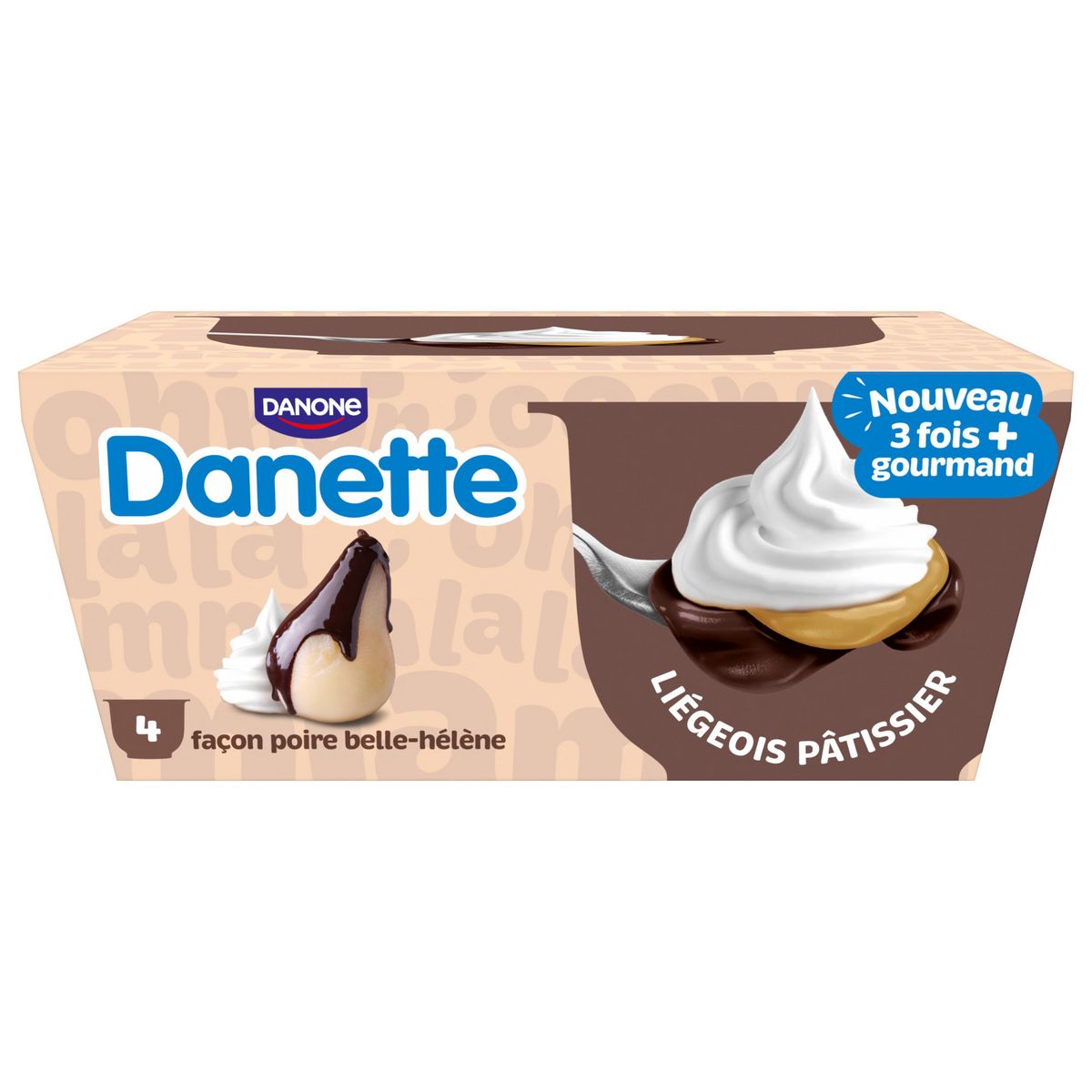 Danette liégeois pâtissier est une nouvelle gamme gourmande qui revisite tes desserts préférés. Parce que "jamais deux sans trois", Danette a fait de délicieuses associations de saveurs en 3 couches rien que pour toi ! Façon poire belle-hélène est une recette qui allie un délicieux coulis poire à l'onctuosité d'une crème dessert Danette, recouvert d'une mousse fouettée, pour un supplément de gourmandise ! Le tout fabriqué en France dans notre laiterie de Saint-Just-Chaleyssin (38) avec du bon lait 100% français. Danette, c'est le dessert pour lequel tout le monde est toujours debout !
