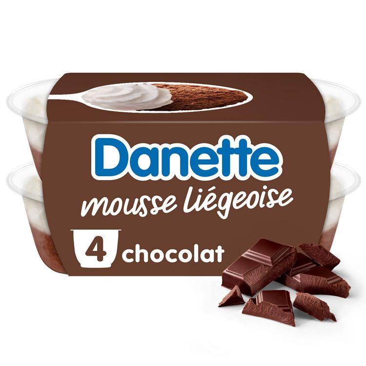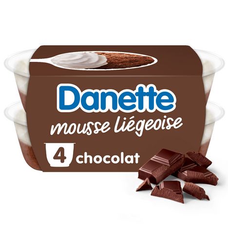 Danette mousse liégeoise, c’est la gourmandise de notre mousse au chocolat Danette recouverte d’une délicieuse mousse fouettée. Un dessert liégeois doublement gourmand avec deux mousses !