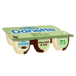 Crème dessert au lait et au chocolat Les enfants ont aussi leur Danette au bon gout de chocolat, et elle est bio ! Toute l'onctuosité de notre crème dessert Danette avec du bon lait 100% bio, dans des petits pots pour se faire plaisir juste ce qu'il faut. Fabriqué en France avec du bon lait français, ce dessert 100% bio doux et gourmand fera le bonheur de vos enfants.