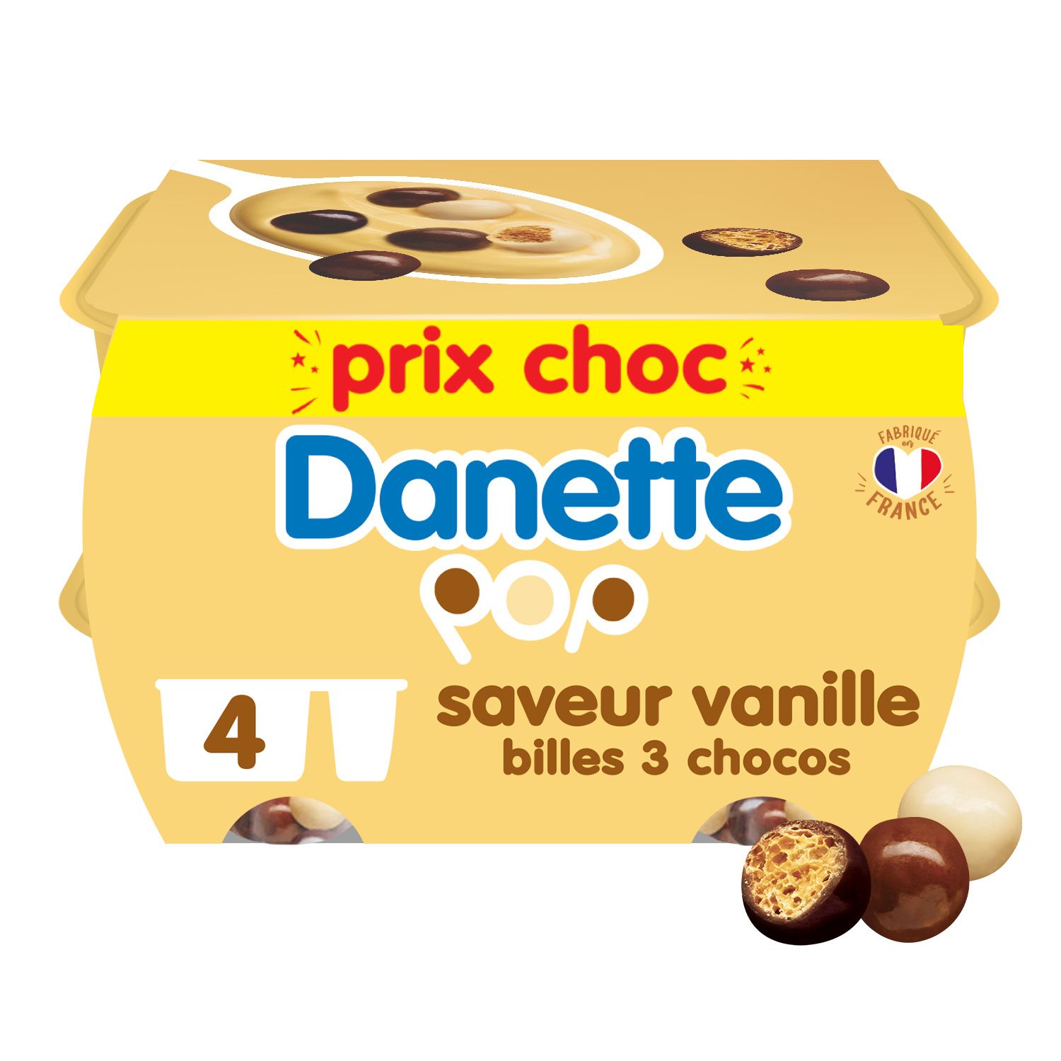 Pop Crème dessert à la vanille et billes soufflées 3 chocos
