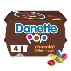 Danette POP chocolat c'est de délicieuses billes chocolatées multicolores à verser dans votre crème dessert chocolat Danette. Fabriquée dans notre laiterie de Le-Molay-Littry (14) avec du bon lait français, cette onctueuse crème chocolat se déguste avec ses billes colorées croustillantes. Un dessert ludique et gourmand à partager pour petits et grands! Danette, c'est le dessert pour lequel tout le monde est toujours debout!