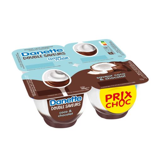 Danette crème dessert double saveur, c'est de la crème et du bon lait français* avec une délicieuse saveur de coco sur un lit de chocolat et toujours la petite touche de bonne humeur qui va avec. Fabriquée dans nos laiteries de Saint-Just-Chaleyssin (38) et de Bailleul (59), cette crème dessert à la texture onctueuse est Idéale pour un dessert gourmand en fin de repas. Danette, c'est la crème dessert pour laquelle tout le monde est toujours debout! *Ajout de lait écrémé concentré ou en poudre (Origine: UE)