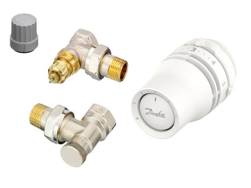 Kit corps et robinet thermostatique équerre clic-clac laiton nickelé DANFOSS