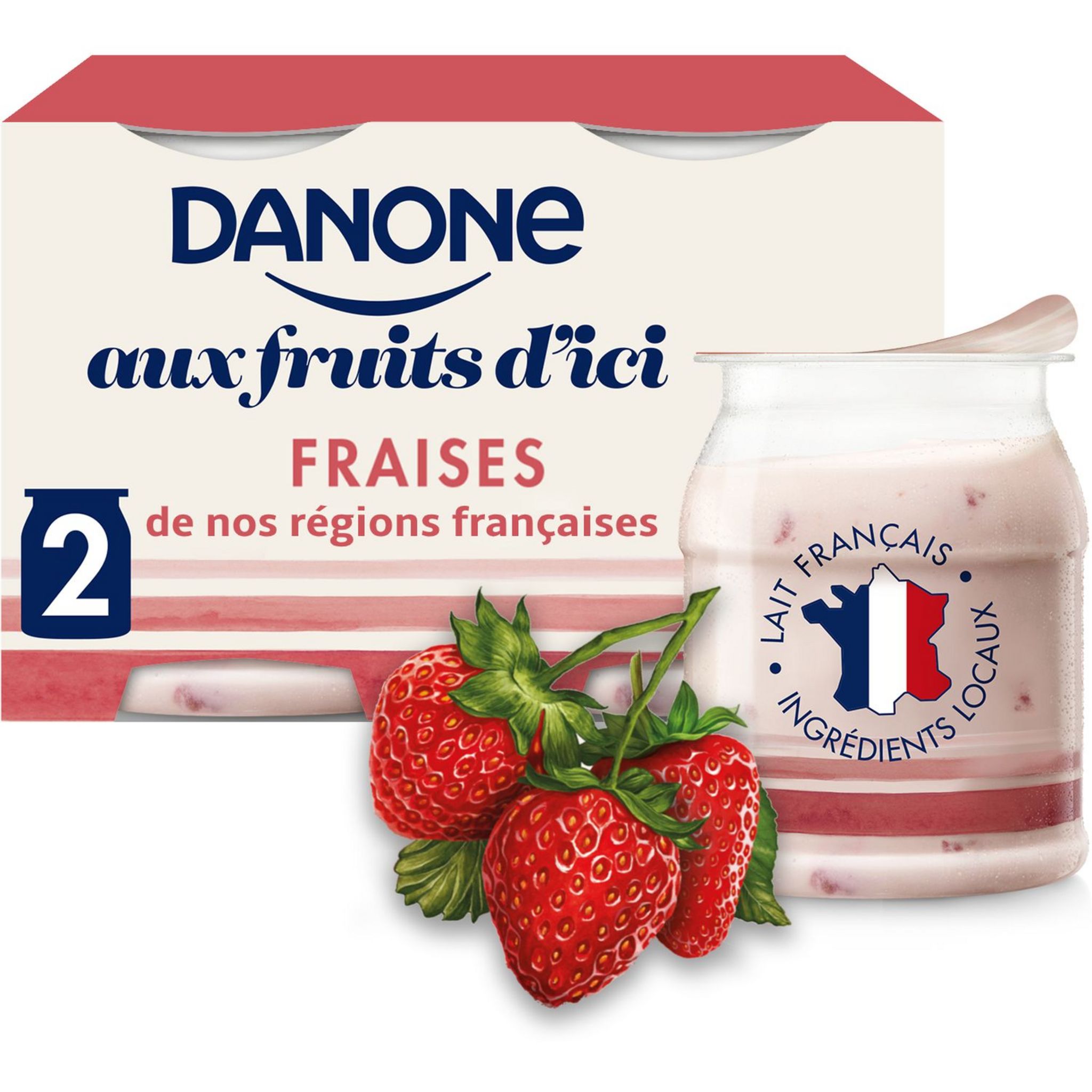 yaourt (LAIT entier (62,5%), LAIT écrémé concentré ou en poudre (11%), crème (LAIT) (1,9%), ferments lactiques (LAIT)) fraises (12,3%) framboises (5,3%) sucre (6,4%) LAIT : Origine France