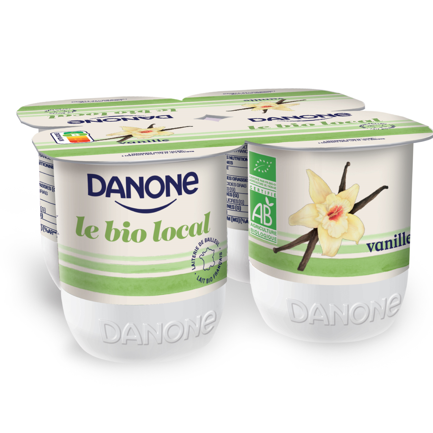 Yaourt bio, sucré, à la vanille Une nouvelle gamme de yaourt fabriquée avec du lait bio français dans sa laiterie de Bailleul située dans les Hauts de France. Des produits bons pour la santé et bons pour la planète.Le bio de Danone, plus qu’un yaourt,un engagement.