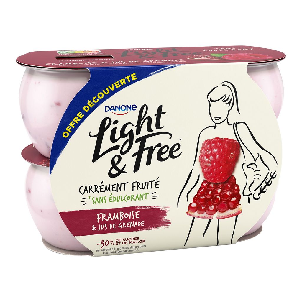 Découvrez Light & Free, une nouvelle offre pour ceux qui veulent se sentir bien au quotidien dans leur corps, riche en goût, sans superflu et juste inspirée par la nature Spécialité laitière sucrée, à la framboise et au jus de grenade à base de concenté, aromatisée
