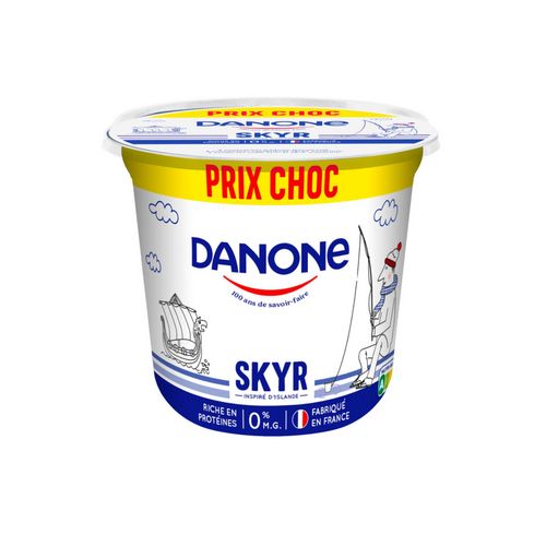 Le skyr nature Danone du Monde est une recette inspirée d'Islande, naturellement riche en protéines et avec 0% de matières grasses. Ce skyr nature est fabriqué dans notre laiterie de Ferrières-en-Bray (76) à base d'ingrédients simples, du bon lait français et des ferments . La texture consistante et onctueuse fait de ce skyr un allié du petit déjeuner avec des céréales, des fruits, du miel mais aussi un trés bon encas ou un dessert! Il peut également être utilisé comme ingrédients de base pour certaines recettes salées. Comme le yaourt nature de Danone il est Nutri-score A