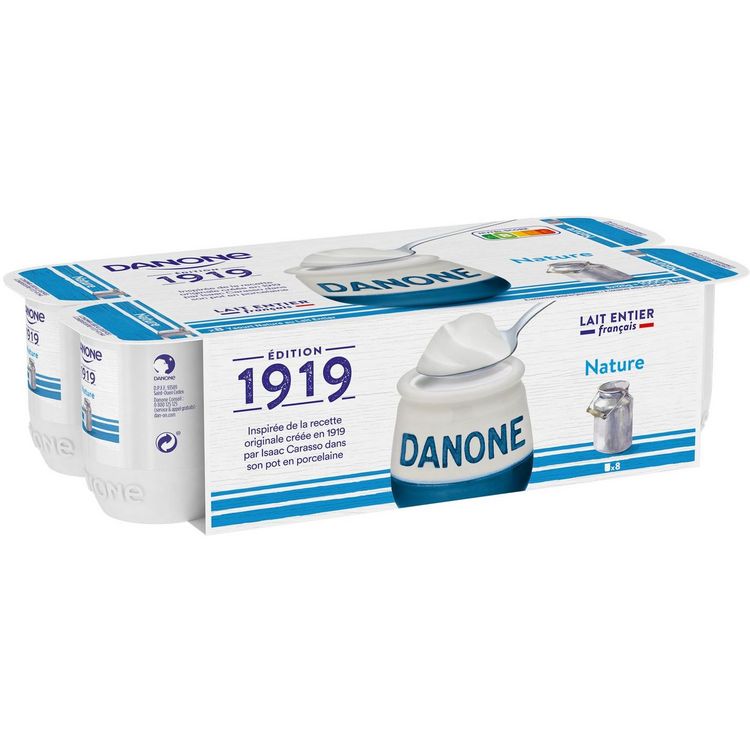 yaourt nature au lait entier Danone 1919, un délicieux yaourt nature au bon lait entier inspiré de la recette originale de 1919 et sublimé par 100 ans de savoir faire.