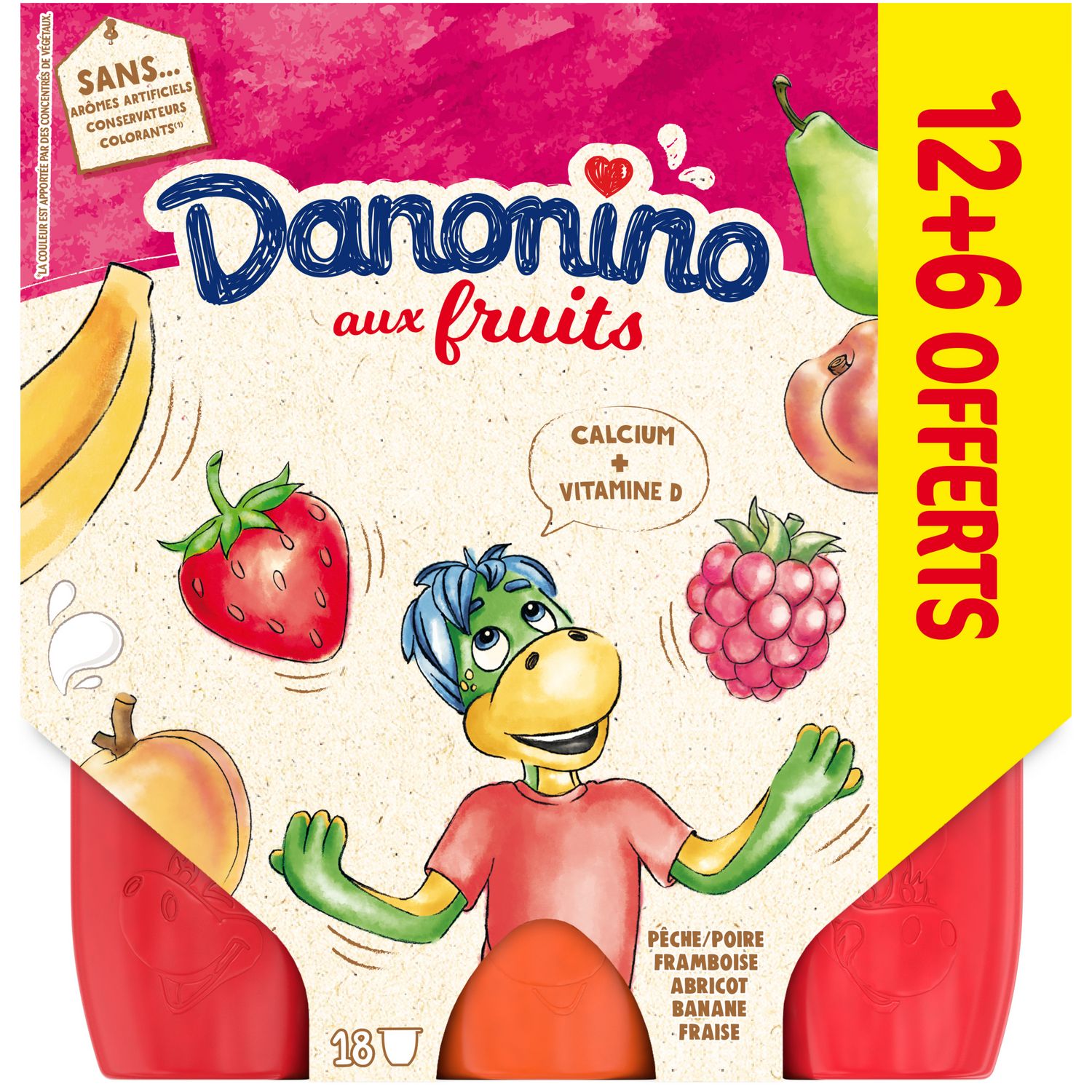 Danonino fraise, banane, framboise, abricot, pêche-poire est un fromage blanc source de calcium et de vitamine D, pour une croissance osseuse normale des enfants. Cette recette au nutriscore B est fabriquée dans notre laiterie de Ferrières-en-Bray (76) avec c'est du bon lait français et de savoureux fruits mixé. Le fromage blanc Danonino à la texture onctueuse et au bon goût de fruits et est sans arôme artificiel, sans colorant* ni conservateur. Un allié idéal pour le goûter de vos enfants! *La couleur de ce produit est apportée par des concentrés de fruits et légumes