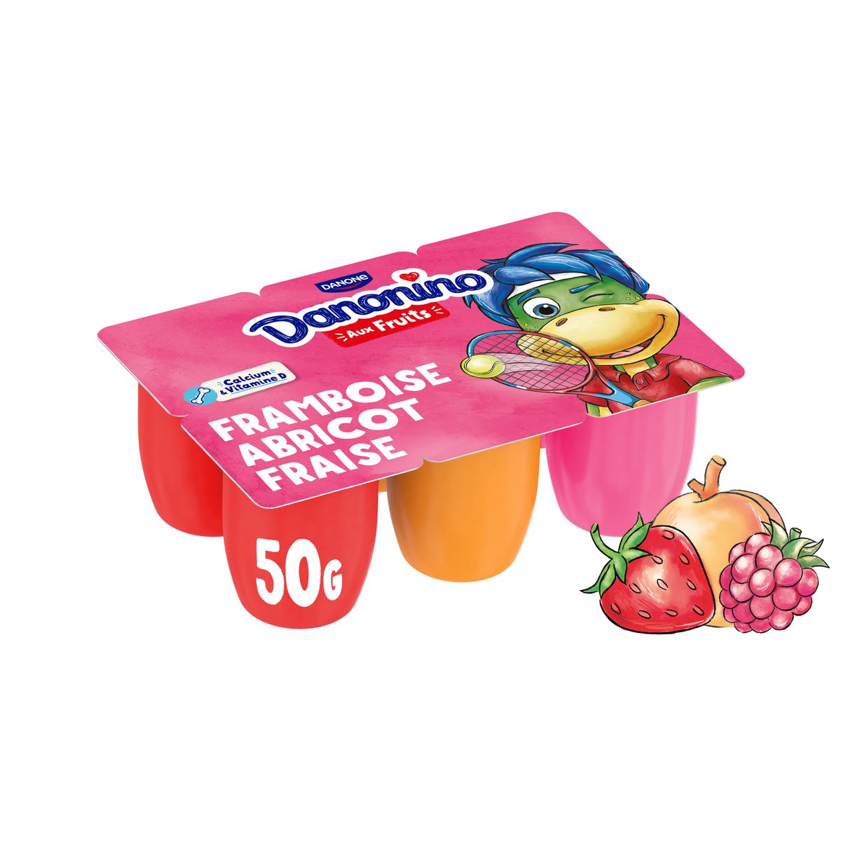 Danonino fraise, framboise, abricot est est un fromage blanc source de calcium et de vitamine D, pour une croissance osseuse normale des enfants. Cette recette au nutriscore B est fabriquée dans notre laiterie de Ferrières-en-Bray (76) avec c'est du bon lait français et de savoureux fruits mixé. Le fromage blanc Danonino à la texture onctueuse et au bon goût de fruits et est sans arôme artificiel, sans colorant* ni conservateur. Un allié idéal pour le goûter de vos enfants! *La couleur de ce produit est apportée par des concentrés de fruits et légumes