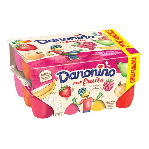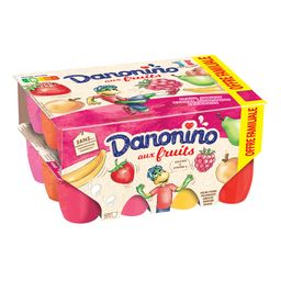 Danonino fraise, banane, framboise, abricot, pêche-poire est un fromage blanc source de calcium et de vitamine D, pour une croissance osseuse normale des enfants. Cette recette au nutriscore B est fabriquée dans notre laiterie de Ferrières-en-Bray (76) avec c'est du bon lait français et de savoureux fruits mixé. Le fromage blanc Danonino à la texture onctueuse et au bon goût de fruits et est sans arôme artificiel, sans colorant* ni conservateur. Un allié idéal pour le goûter de vos enfants! *La couleur de ce produit est apportée par des concentrés de fruits et légumes
