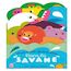 De la girafe au singe, tout le monde a un petit creux dans la savane ! Et pendant que certains se mettent quelque chose sous la dent, d'autres s'amusent dans l'eau. Dès 6 mois La collection Mon livre-farandole : Des livres à déplier et des histoires d'animaux illustrées sur chaque côté ! Chaque titre présente dix animaux dans leur milieu naturel, placés habilement par ordre de grandeur renforçant l'aspect ludique de l'objet. Le livre-frise contient deux histoires, l'une au recto, l'autre au verso. Chaque histoire correspond à un temps fort dans la journée du tout-petit (l'heure du bain, le moment du repas, le lever et le coucher), avec une mise en couleur vive et colorée afin d'amuser les bébés et stimuler leur vision.