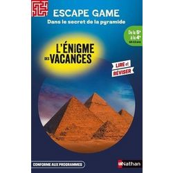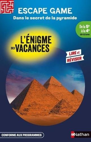 Plus qu'un escape game , c'est un récit d'aventures plein de rebonidssements dignes d' Indiana Jones et de La momie . Chloé et Nils ont gagné le 1er prix d'un concours de dessin : un voyage en Egypte avec la visite de la pyramide de Khéops ! Arrivés sur place, impatients, les deux ados s'approchent de l'édifice et rencontrent Nevine, une jeune Cairote de 13 ans, qui leur propose de commencer la visite. Mais une fois à l'intérieur, un bruit retentissant se fait entendre, et l'entrée de la pyramide se referme. Les trois enfants se retrouvent plongés dans l'obscurité et prisonniers de la gigantesque structure de pierre. Comment vont-ils réussir à s'échapper de la pyramide ?