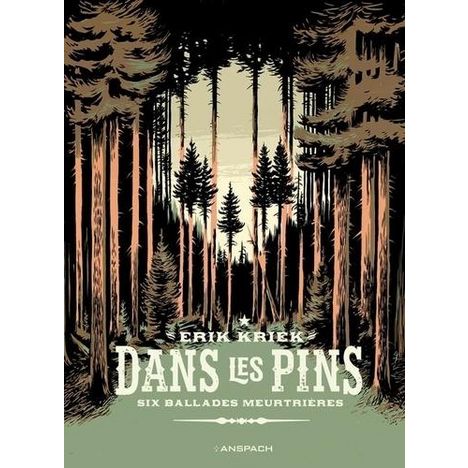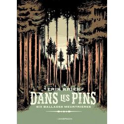 In the pines, in the pines, Where the sun never shines, And we shiver When the cold wind blows - Chanson populaire américaine, vers 1870 Dans les pins est un recueil de six nouvelles graphiques inspirées par des murder ballads, ces chansons folkloriques qui racontent des événements tragiques, qu'ils soient réels ou imaginaires. Ces récits sombres abordent des thèmes tels que les amours impossibles, le crime passionnel, la jalousie et la cupidité. Ce genre musical est profondément enraciné dans la tradition américaine. Des artistes, tels que Dolly Parton, Johnny Cash, Bob Dylan ou encore Nick Cave, se sont essayés à ce folk sanglant, à cette country & western de cauchemar. Pour Dans les pins, Erik Kriek, passionné de cette musique, a sélectionné ses murder ballado préférées et les a adaptées en six récits originaux. Les illustrations restituent admirablement l'ambiance poisseuse et étouffante de l'Amérique profonde, pudibonde et raciste du début du XXe siècle. Dans les immenses forets de pins des Appalaches, il se passe des choses qui ne doivent pas voir la lumière du jour...