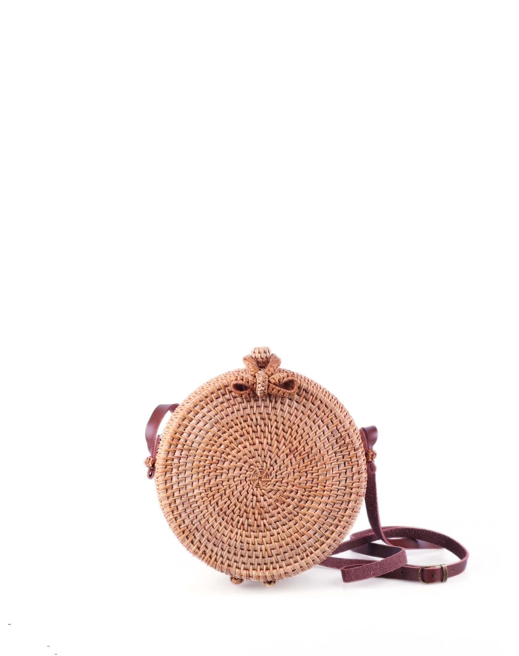 Ce sac rond au tissage complexe est une véritable œuvre d'art, fabriquée à la main. La lanière en cuir naturel est réglable pour un ajustement parfait, et la fermeture traditionnelle assure la sécurité de vos affaires.La magnifique doublure en batik rend cette pièce encore plus spéciale. Comme chaqu