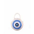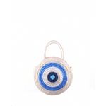 Le sac rond en paille JEMELUK de Dari Bali est tissé à la main avec deux poignées en paille tressée et une doublure beige. Il possède une seule poche intérieure et se ferme à l'aide d'un bouton-pression.Comme il est fait à la main, chaque sac peut différer légèrement en couleur ou en taille de celui