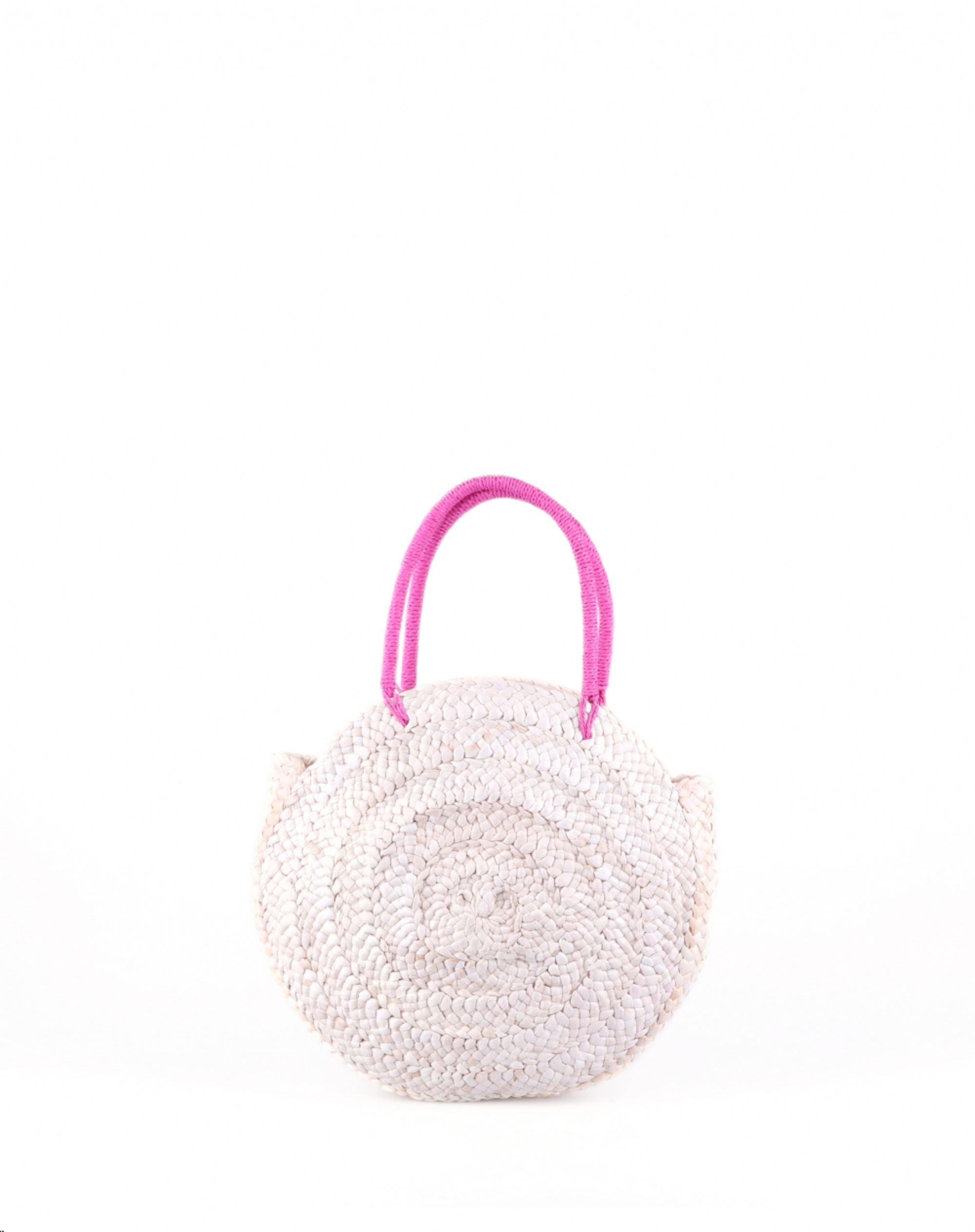 Voici le sac balinais SULUBAN de Dari Bali ! Cet élégant sac rond est fabriqué en paille tressée et comporte deux poignées en paille tressée.Il a également une doublure intérieure beige et se ferme avec un bouton pression. Parce qu'il est fait à la main, chaque sac est unique, donc de légères variat