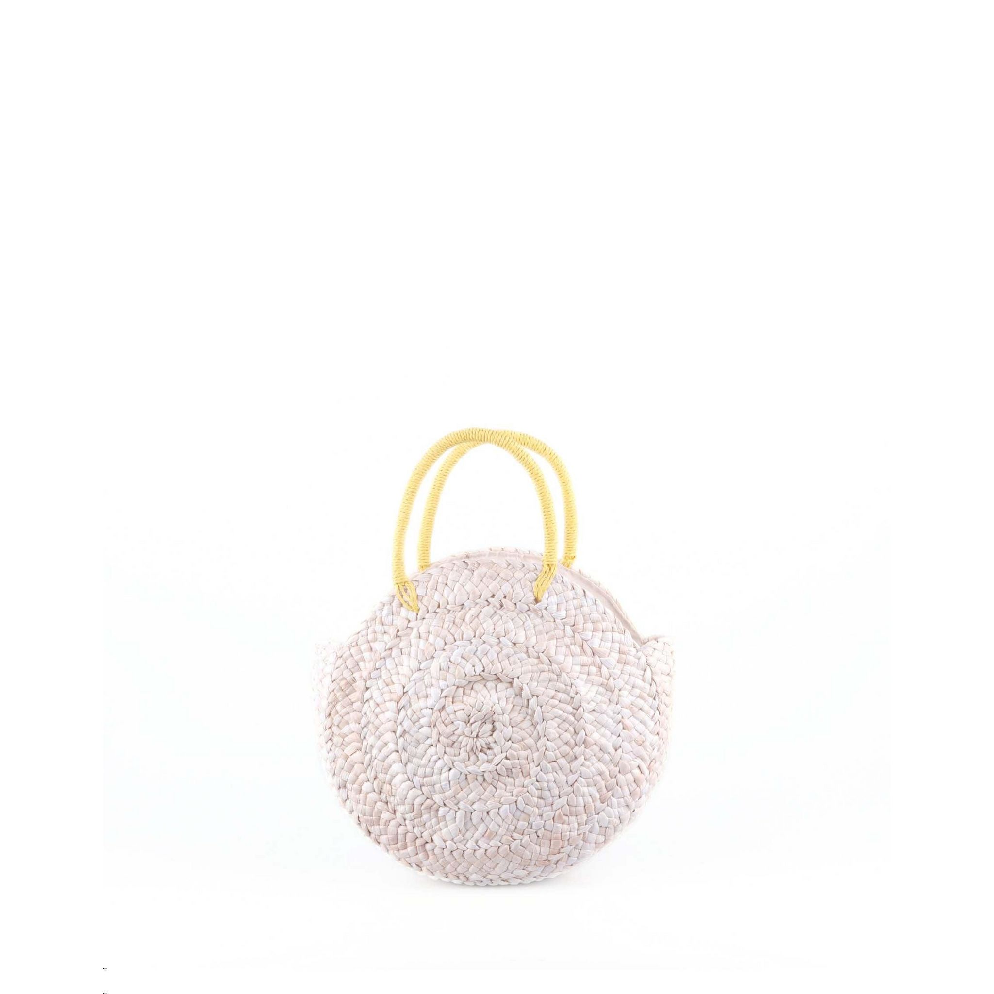 Le sac rond en paille collection TANAH de Dari Bali est parfait pour une journée à la plage ou un pique-nique dans le parc. Il comporte deux lanières en paille tressée et une poche intérieure. La doublure est en coton beige, et le sac se ferme avec un fermoir à bouton. Comme il est fait à la main, chaque sac est unique, vous pouvez donc remarquer de légères variations de couleur ou de taille par rapport à la description du produit.