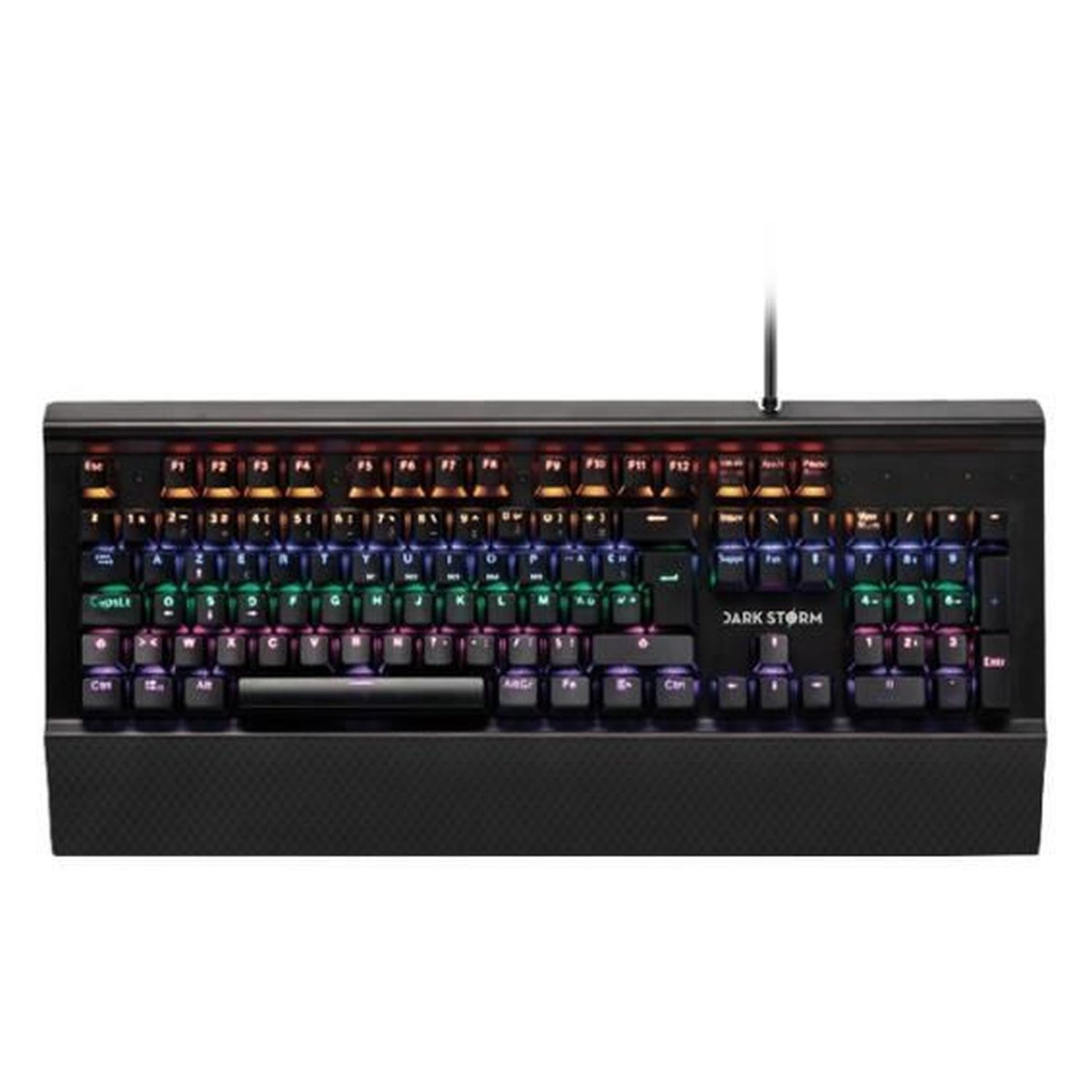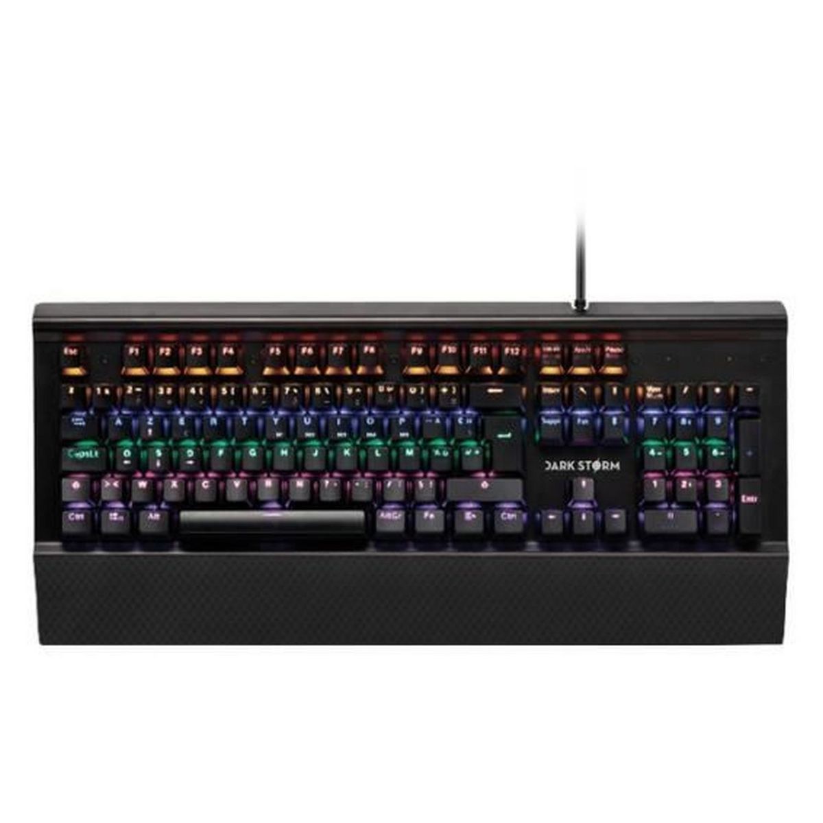 Découvrez ce clavier Gaming filaire mécanique Dark Storm avec ses 105 touches gravées pour un confort optimal et ses 13 modes de lumières ajustables.
