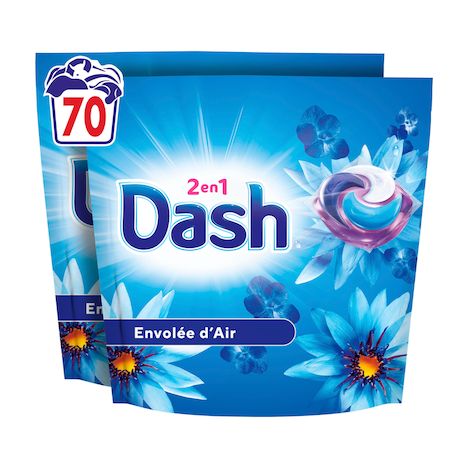 Découvrez Dash 2in1 PODS® Capsules de lavage Envolée d'air pour un nettoyage en profondeur et jusqu'à 3 semaines de fraîcheur (dans l'armoire). Avec un design unique à quatre compartiments, les Dash 2in1 PODS® sont combinés avec l'adoucissant Lenor. Ils neutralisent les mauvaises odeurs et se dissolvent plus rapidement qu'auparavant, même en lavages à froid. FABRIQUÉ EN FRANCE : DASH est une marque patrimoniale française avec plus de 50 ans d'expérience. Les capsules de lessive Dash 2in1 PODS® sont produites à Amiens près de Paris