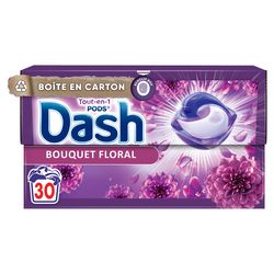 Essayez la lessive en capsules Dash Tout-en-1 PODS Bouquet Floral pour une propreté éclatante et un linge d'une fraîcheur exceptionnelle, même en lavage à froid. Une fraîcheur de maniaque. La lessive Dash est dotée d'une technologie fraîcheur innovante qui assure une fraîcheur longue durée en laissant un parfum inspiré des senteurs du printemps. La lessive Dash PODS est désormais proposée dans une boîte en carton recyclable fabriquée à partir de 70 % de fibres recyclées. Réduisons notre consommation de plastique. En prime, la lessive Dash traite votre linge avec ses 5 ACTIONS : 1. Nettoyage 2. Fraîcheur 3. Douceur 4. Soin des fibres 5. Propreté éclatante. Dash est un produit fabriqué en France et la marque a plus de 50 ans d'expérience. Astuce. Pour un plaisir d'utilisation optimal, utilisez les capsules Dash Tout-en-1 PODS avec l'adoucissant Lenor et le parfum de linge Lenor pour un nettoyage en profondeur accompagné d'une sensation de fraîcheur et de douceur.
