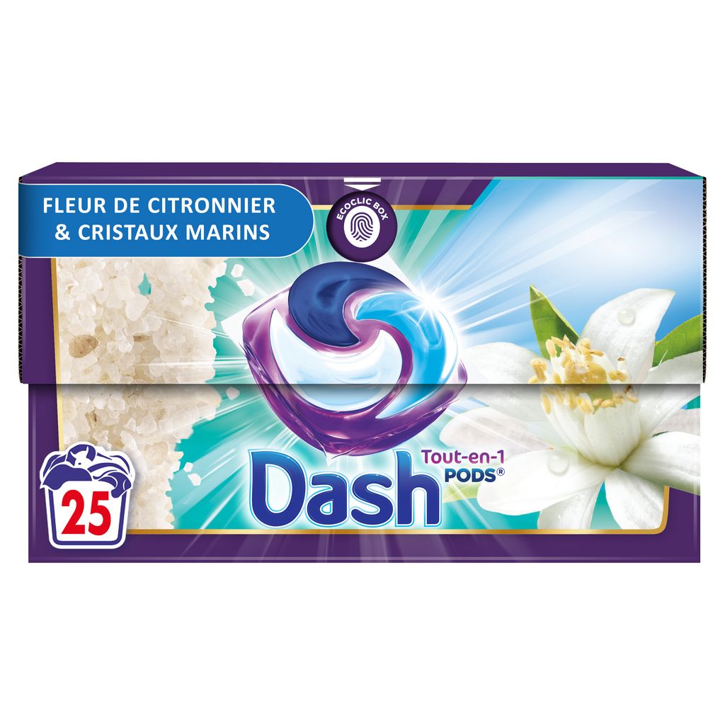 Essayez la lessive en capsules PODS Dash La Selection Tout-en-1 Tilleul Et Sel De Mer - La meilleure sélection Dash de parfums floraux raffinés et une fraîcheur qui dure 5 fois plus longtemps. Découvrez le cœur floral de la nouvelle lessive Dash PODS, désormais vendu avec une recharge supplémentaire pour une fraîcheur unique inspirée de Tilleul Et Sel De Mer. Profitez d'une authentique expérience olfactive dans votre linge avec l'assurance que les capsules de lessive Dash La Sélection Tout-en-1 PODS sont testées dermatologiquement. De plus, les capsules de lessive Dash ont un film 100 % soluble pendant le lavage et sont conditionnées dans un nouvel emballage carton recyclable certifié FSC. Dash est un produit de qualité fabriqué en France avec plus de 50 ans d'expérience. Astuce. Pour un plaisir d'utilisation optimal, utilisez Dash Tout-en-1 PODS capsules en association avec l'adoucissant et rehausseur de parfum Tilleul Et Sel De Mer de Lenor pour un nettoyage intense accompagné d'une sensation de fraicheur et de douceur.