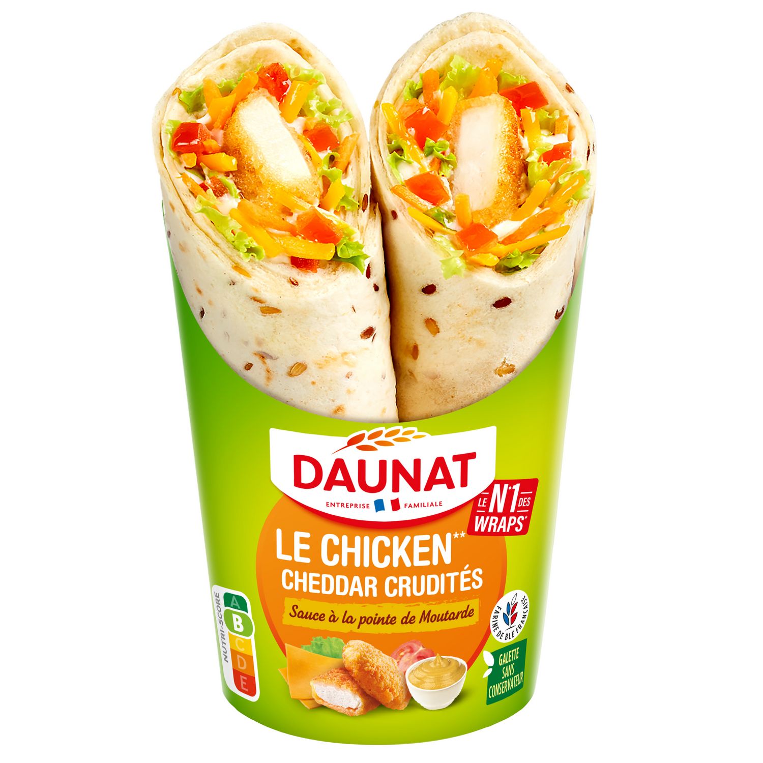 Be Wrappy chicken wrap poulet cheddar et crudités
