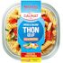 Ingrédients : Ingrédients : pâtes cuites 40,1% (eau, semoule de BLE dur, sel), salade 14%, sauce condimentaire cocktail 12% [eau, huile de colza, MOUTARDE (eau, graines de MOUTARDE, vinaigre d'alcool, sel), vinaigre d'alcool, sucre, sel, tomate séchée 0,12%, amidon de maïs, concentre de tomate 0,03%, arômes naturels (contient CELERI), épaississant : gomme xanthane], THON au naturel 10% (THON listao origine hors UE, eau, sel), OEUF dur 8% (OEUF, sel, acidifiants : acide citrique – acide acétique), mais 7% (mais, sel), tomate 7%, huile de colza, eau, vinaigre d’alcool, sel, persil, ail, poivre, poivre, ferments. Informations en MAJUSCULES destinées aux personnes allergiques. Traces éventuelles de lait, crustacés, graines de sésame, soja, fruits à coque, lupin, mollusques.