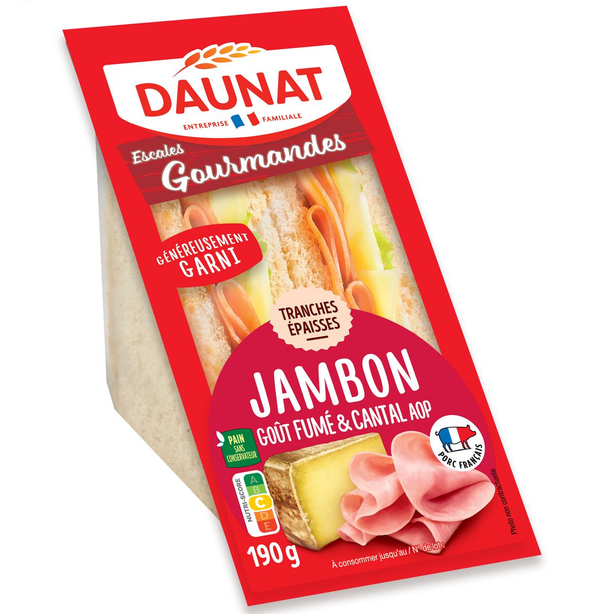 Un sandwich généreusement garni avec un pain spécial campagne, une délicieuse chiffonnade de jambon délicatement fumé et une généreuse tranche de Cantal AOP qui va vous faire succomber.