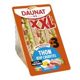 Pour les plus gourmands et les grands appétits, 3 fois plus de plaisir avec ses 3 sandwichs avec une recette classique du marché: du thon associé à des tomates, de la salade et des concombres pour une fraicheur garantie.