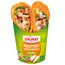 Ingrédients : Galette de BLÉ à la tomate 48% (farine de BLÉ 30%, eau, huile de colza, sel, poudre de tomate 0.4%, paprika, poudre à lever : carbonate de sodium, basilic), viande de poulet rôti traitée en salaison préparée en France 21% (viande de poulet origine UE, eau, acidifiants : lactate de potassium - acétates de potassium, dextrose, amidon de pomme de terre et amidon transformé de pomme de terre, sel, stabilisants : triphosphates, sucre roux, antioxydant : érythorbate de sodium), sauce au YAOURT au pesto 11% [huile de colza, eau, YAOURT 2.4%, vinaigre d’alcool, basilic 0.4%, amidon, jaune d’OEUF, MOUTARDE (eau, graines de MOUTARDE, vinaigre d’alcool, sel), sucre, huile d’olive vierge 0.2%, sel, jus de citron concentré, PARMESAN 0.06%, épaississant : gomme guar, ail 0.01%, épice], salade 8%, tomates mi- séchées assaisonnées 6% (tomates semi-déshydratées, huile de colza, sel, origan, ail), tomate 2%, amidon transformé de pomme de terre. ( % exprimés sur le produit fini). Informations en MAJUSCULES destinées aux personnes allergiques. Traces éventuelles de poissons, crustacés, céleri, graines de sésame, soja, lupin et fruits à coque.