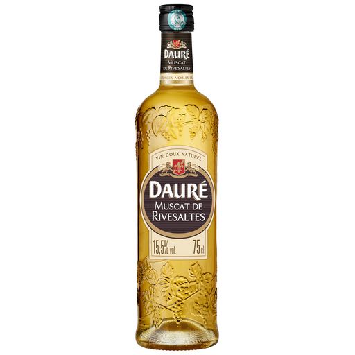 Issu d'un terroir ensoleillé, le Muscat de Rivesaltes DAURÉ est élaboré à partir de cépages blancs : Muscat d'Alexandrie et Muscat Petits Grains. Sa bouteille joliment gravée de grappes de raisins en fait un Muscat élégant et gourmand.