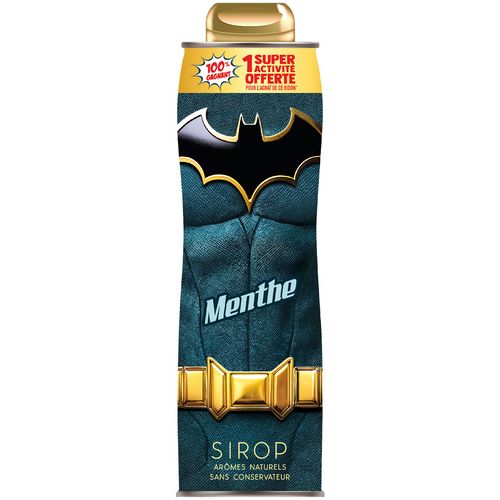 Ingrédients : Sucre, eau, arômes naturels de menthe, colorants : caramel ordinaire, E133.