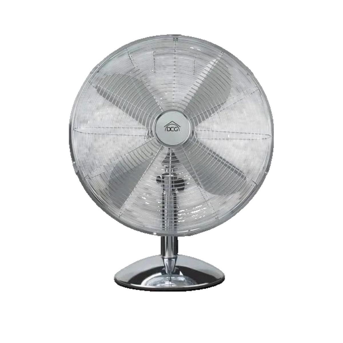 Découvrez le ventilateur DCG Eltronic VE1616, un allié de votre confort. Avec sa finition argentée métallique et son design moderne, il se marie parfaitement à tout intérieur. Ce ventilateur de table léger et portable offre une circulation d'air efficace grâce à ses trois vitesses et son oscillation