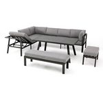 Avec son design tendance et la souplesse de ses formes, le salon de jardin ANTALYA permet de réunir jusqu'a 9 personnes. Elégante et pratique, la table haute en aluminium assure un confort maximal. Tous les coussins sont déhoussables.